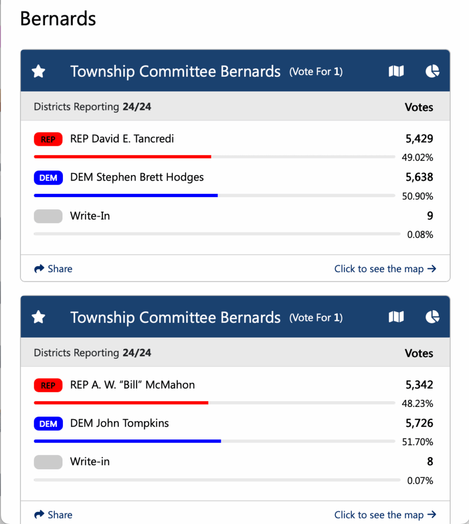 As most of you know, winning an election here as a Democrat has historically been a rare occurrence. We were blessed to have sage advisors in Ana Duarte McCarthy and Joan M. Bannan, the first two Democratic women who ran and WON in Bernards Township. They helped our team hone our message, and their endorsement video went viral here with over 123,000 views on Instagram, and 50,000 on Facebook. BTDC Chair Jane Conklin was always available to hear me grouse, and worked her magic rallying volunteers and knocking on doors.